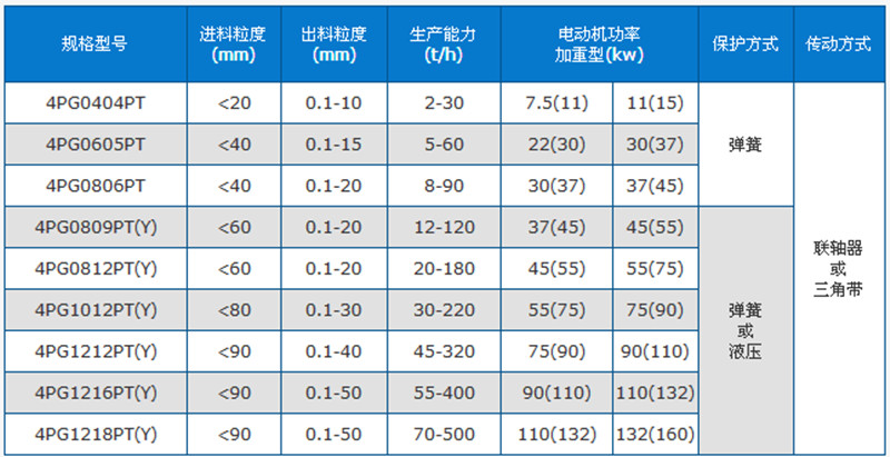四輥破碎機技術參數
