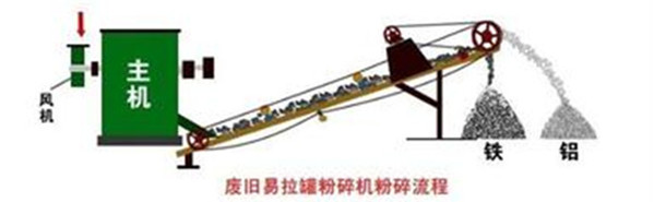 易拉罐粉碎機轉子配有若干錘頭、環錘、鉤刀,轉子在電動機高速帶動下,可對金屬輕薄料進行剪切、錘擊、揉搓作業處理。使油漆等附著物被剝離回收,形成高密度的團狀物料,價值提升30%左右,直接滿足鋼廠“精料入爐”的要求。
