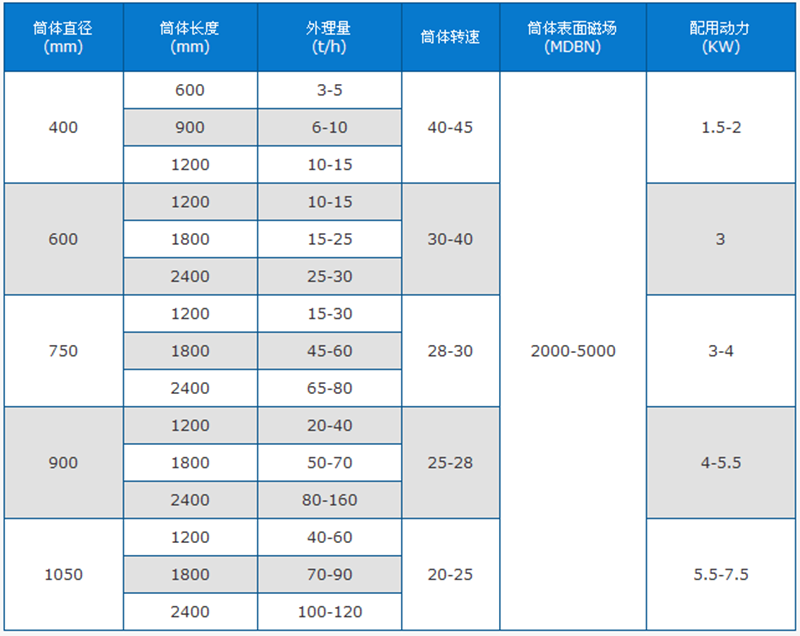 干式磁選機技術參數